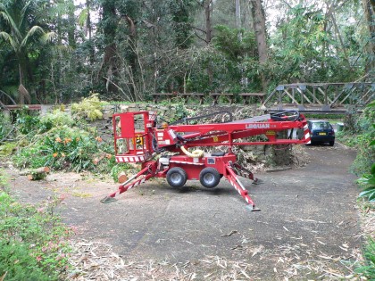 The next tree lopper who looked at the job wanted to use a 25m cherry picker. This sounded hopeful until I realised the truck was over 20 tonnes and would hardly fit in the area and left no drop zone. So I cancelled this job before it started.