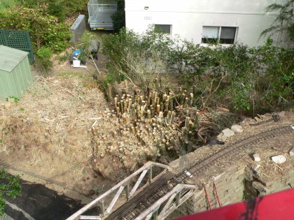Now I have a large area of bamboo stumps. I've cut these and doused them with Roundup and although the clump isn't completely dead there isn't much growth now. It will just take more cutting and poisoning to kill the leftovers and hopefully the stumps will die and rot.