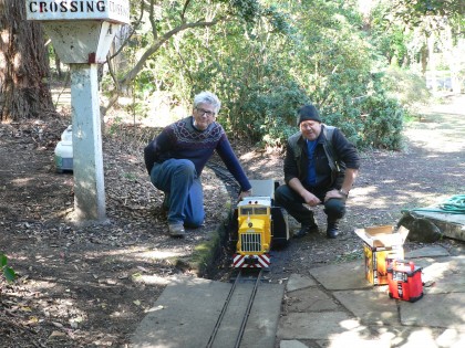 We recently took delivery of a modified Planet and carriage so that our "track inspector" can drive around and "inspect" the track. The order was complicated by the fact we needed the train to suit the 134mm gauge track. Roger Jones delivered the train and we did a test to make sure the modifications were correct.