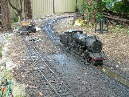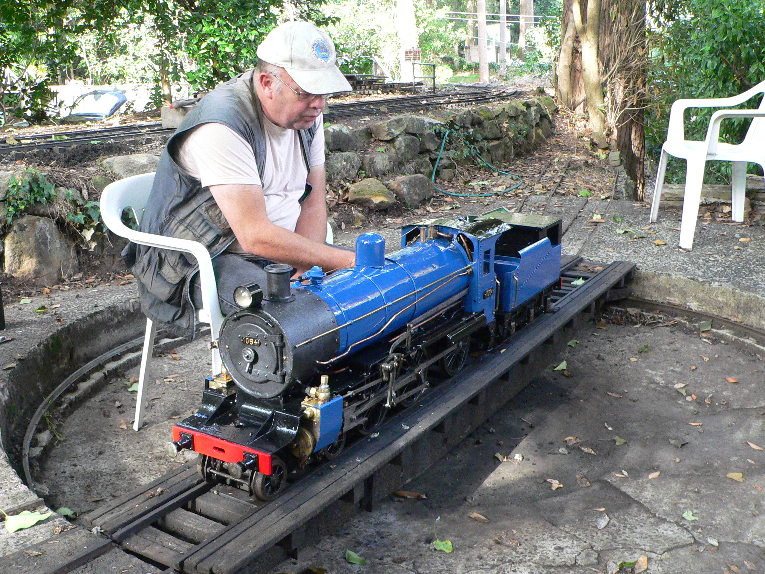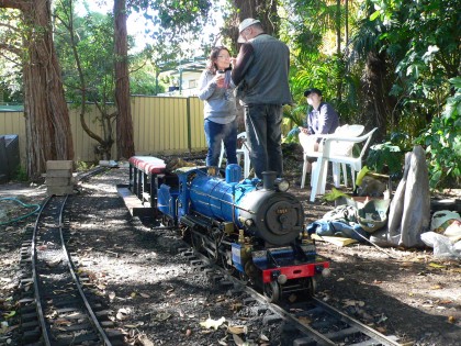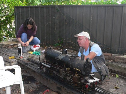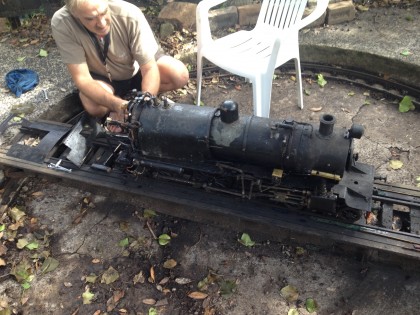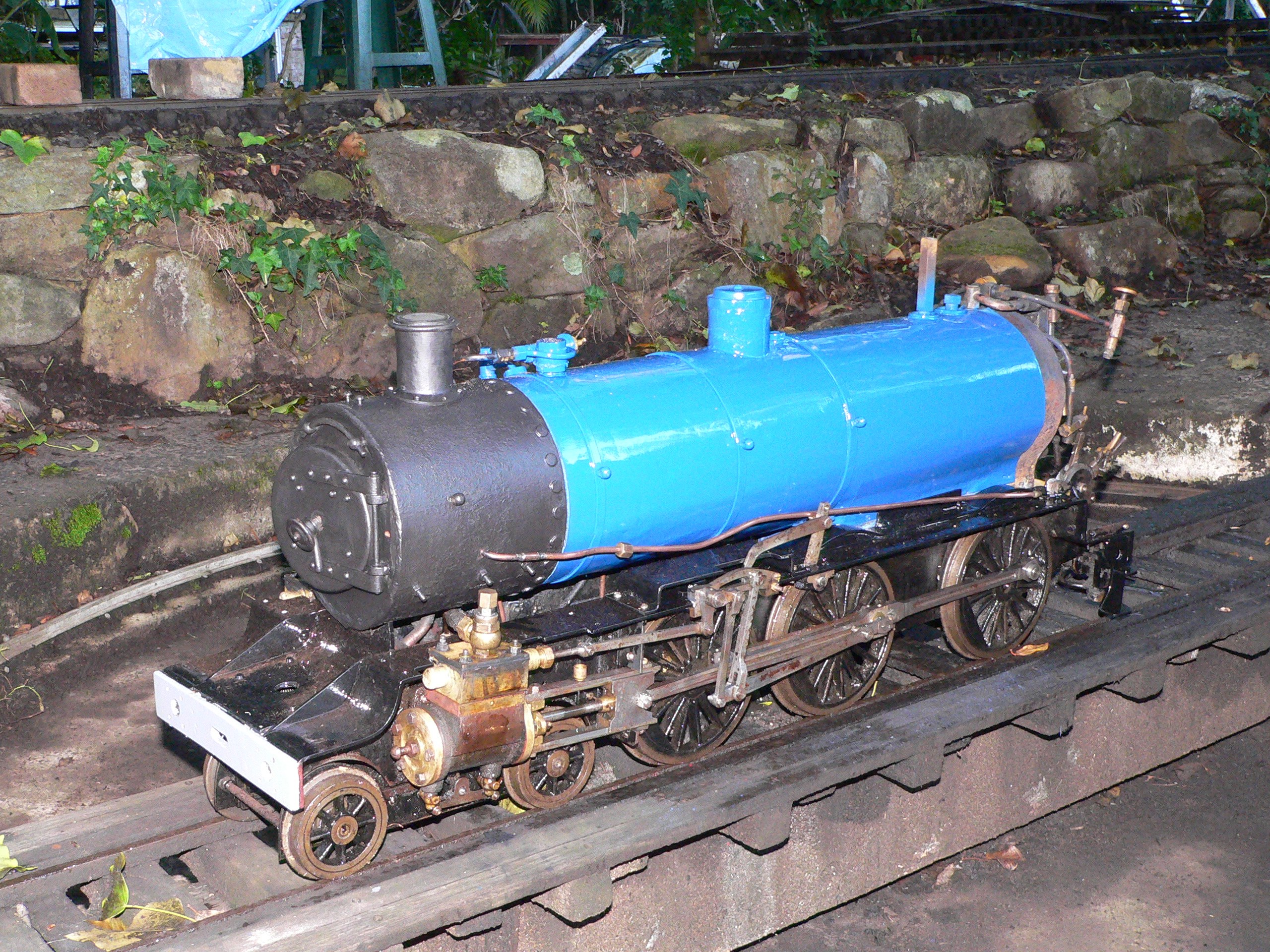 We gave the paint a week to cure because the blue paint is an engine enamel then tightened all the bolts and screws and gave the loco a clean and polish. Then we steamed the loco and had a trial run day. Even though I was careful not to prime or over fire I still managed to coat the loco with grime. So much for its pristine condition. The loco ran well all day and managed to haul a carriage with three people which surprised us all. Below are the before and after shots.