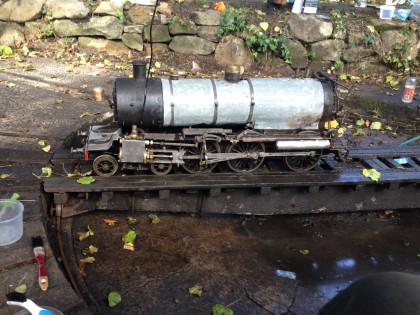 We tested the boiler and steamed this loco in February 2017 but it ran like a dog and couldn't keep steam and looked terrible because it was a mix of dull black and bare metal.