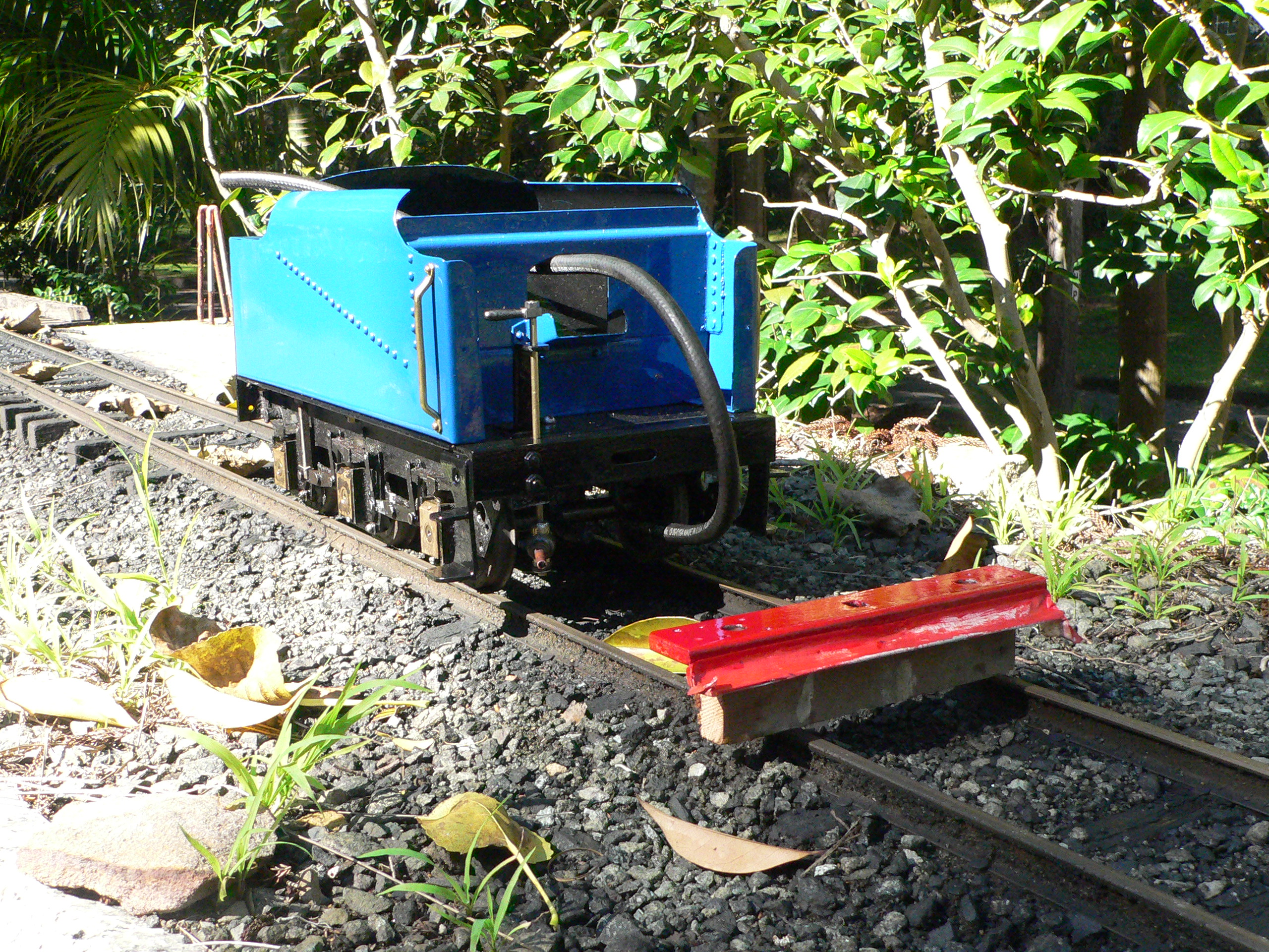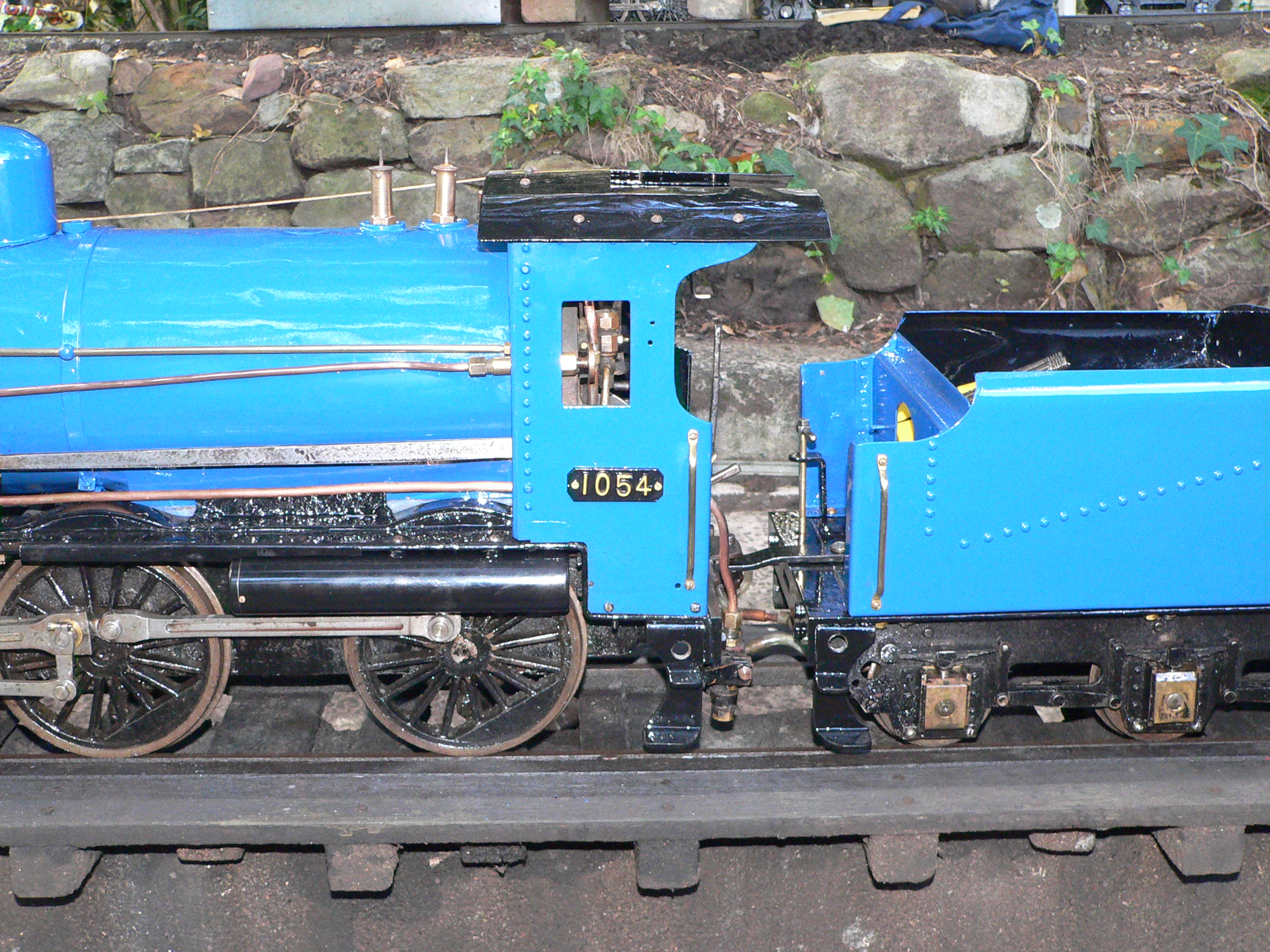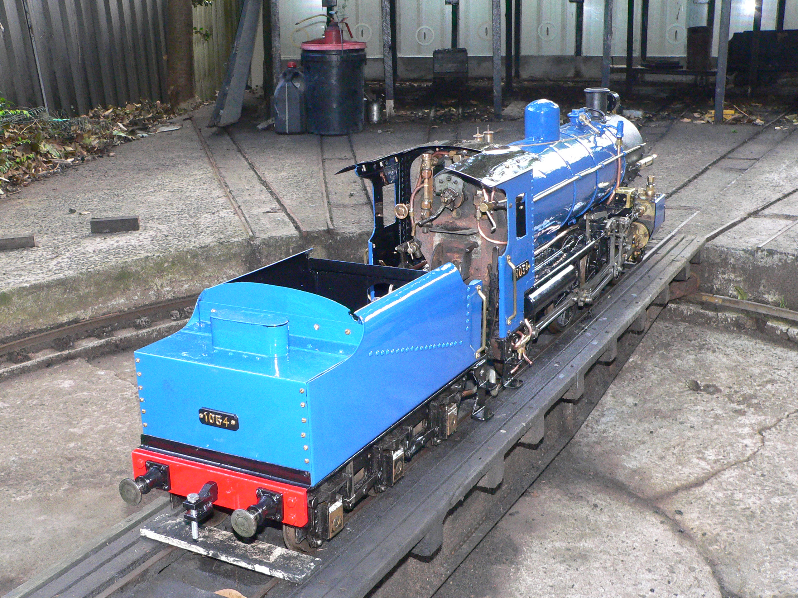 There were some small aluminium plates with "1054" on them and during this repaint we discovered that they had come from this loco. Presumably they were removed when the loco was purchased from the builder and then the loco was painted black and re-numbered "3701". We cleaned and painted these plates and re-fitted them to the loco. The loco is now blue colour (similar to the original colour) and has its original plates.